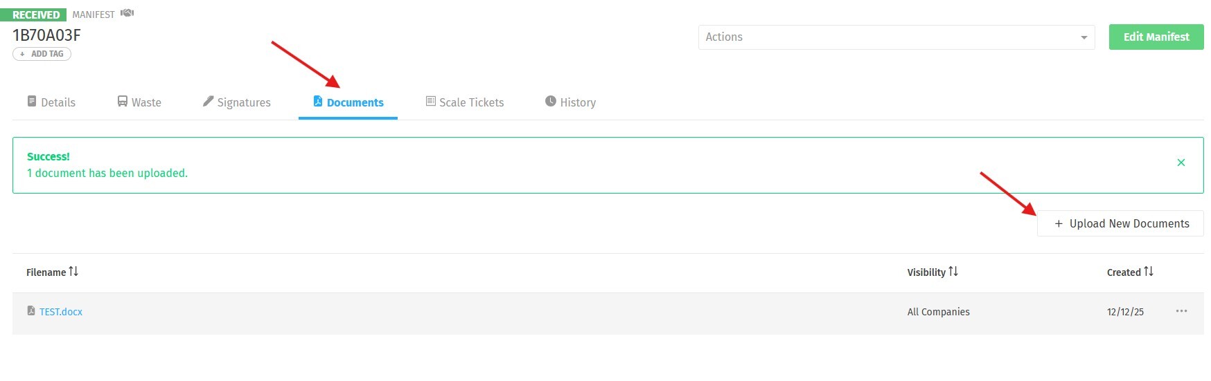 - All Companies: Document is visible to anyone who has access to the Waste Stream