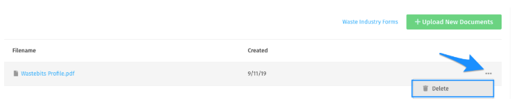 Documents uploaded in error may be deleted by hovering over the three dots to the right of the document and selecting Delete from the menu.